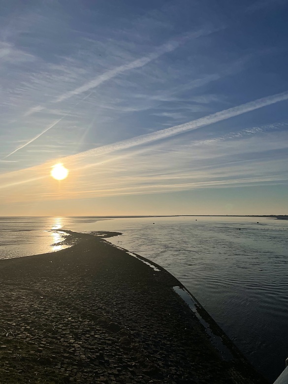 Heute am Mittwoch, den 18.3.2026 waren wir auf einem Spielplatz an einem sehr langen Deich mit einer Lagune. Dort schäumten nur sehr kleine Wellen.
