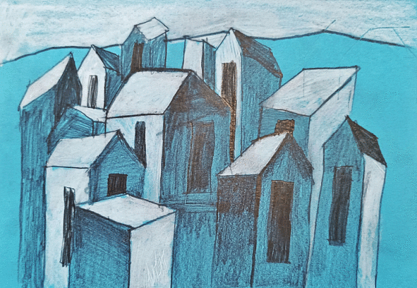 In dieser Unterrichtseinheit erprobten die Schülerinnen und Schüler die Vielperspektivität. Am Beispiel Picassos kubistischer Umsetzung „Blick auf Horta“ (1909) hat der Kurs geometrische Grundformen erkannt und den Begriff Perspektive diskutiert. Durch zeichnerische Vorübungen entwickelten sie ein Verständnis für die kubistische Auffassung von Raum, Perspektive und Form, bei der verschiedene Ansichten gleichzeitig sichtbar gemacht werden und sich im Bild verdichten.